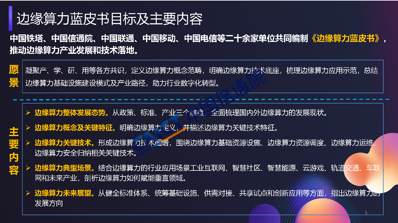工信部等六部委聯合發布《算力基礎設施高質量發展行動計劃》,明確提出促進邊緣算力協同部署,加快邊緣算力建設,支撐工業制造、金融交易、智能電網、云游戲等低時延業務應用,推動“云邊端”算力泛在分布、協同發展。中國鐵塔、中國信通院、中國聯通、中國移動等單位共同啟動邊緣算力研究項目,并形成了《邊緣算力藍皮書》,也期待與行業內合作伙伴共同合作,持續推動邊緣算力技術體系構建及產業生態發展。