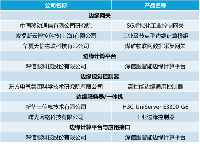 第五批通過“邊緣計算標準件計劃”測試產(chǎn)品名單(排名不分先后)