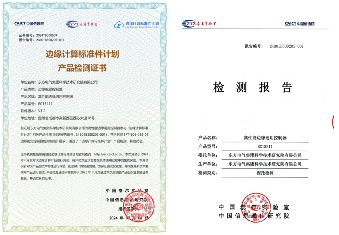 “邊緣計算標準件計劃”證書與檢測報告