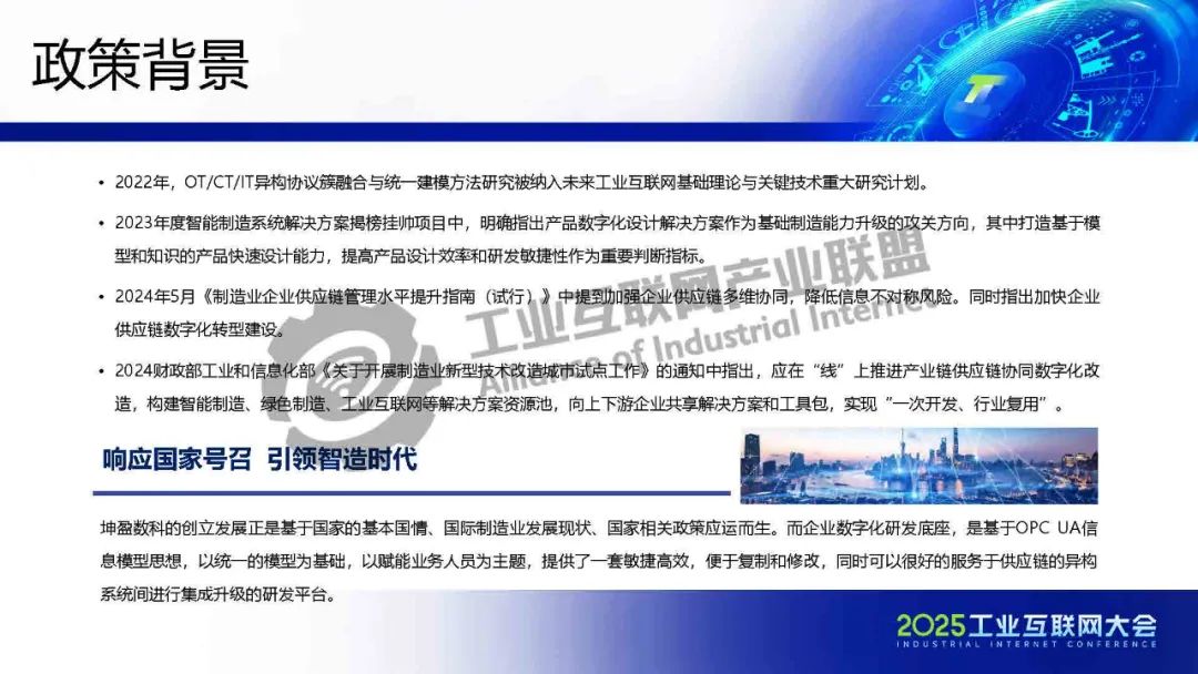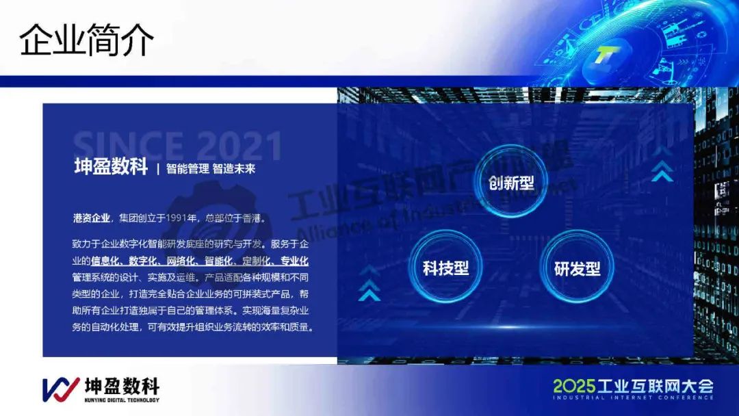 5月22日,在2025工業(yè)互聯網大會“新型工業(yè)控制與智能互操作發(fā)展專題活動”上,北京坤盈數科智能科技有限公司總經理張譽發(fā)表了《企業(yè)數字化研發(fā)底座》的主題演講。
