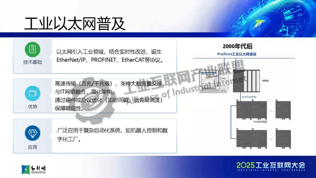 馬曉偉介紹,傳統工業通信面臨布線復雜、協議碎片化、帶寬不足等挑戰,而SPE/APL技術通過單對以太網和高級物理層創新,實現了千米級傳輸、10Mbps高帶寬、本質安全和一網到底的架構,大幅簡化布線并提升兼容性。該技術已應用于石化、電力等流程工業,支持從現場設備到云端的全層級數據貫通。報告還展示了基于APL的新一代DCS架構和七大系列產品,并指出未來發展方向:融合TSN增強實時性、構建開放生態、推動綠色低碳,以及結合AI實現預測性維護。最后強調國產化芯片和極端環境適配是技術落地的關鍵挑戰。SPE/APL技術將助力工業通信向智能化、標準化和可持續方向演進。