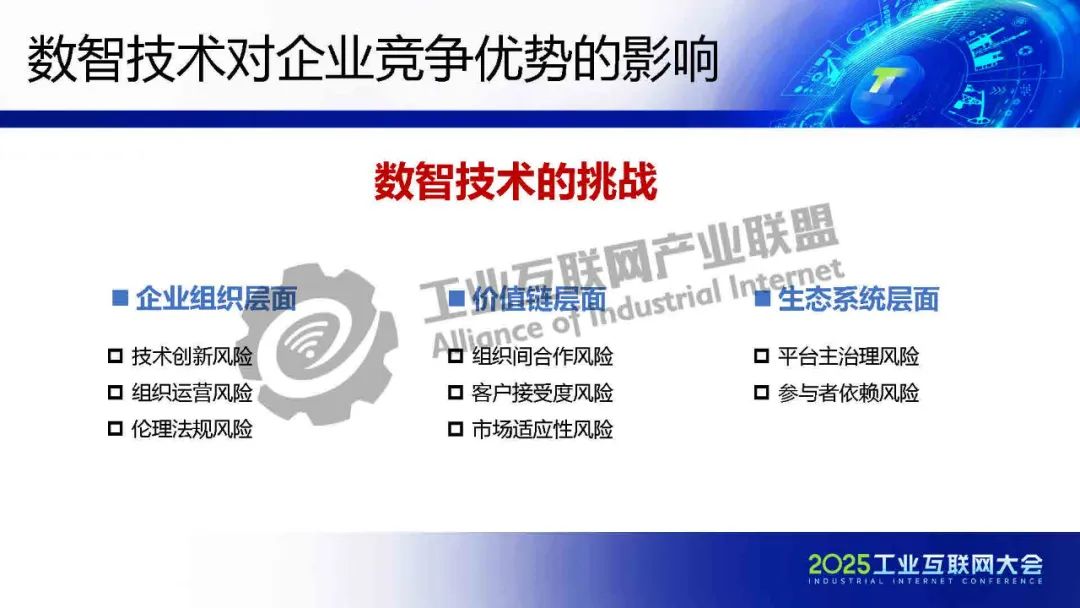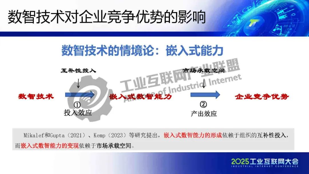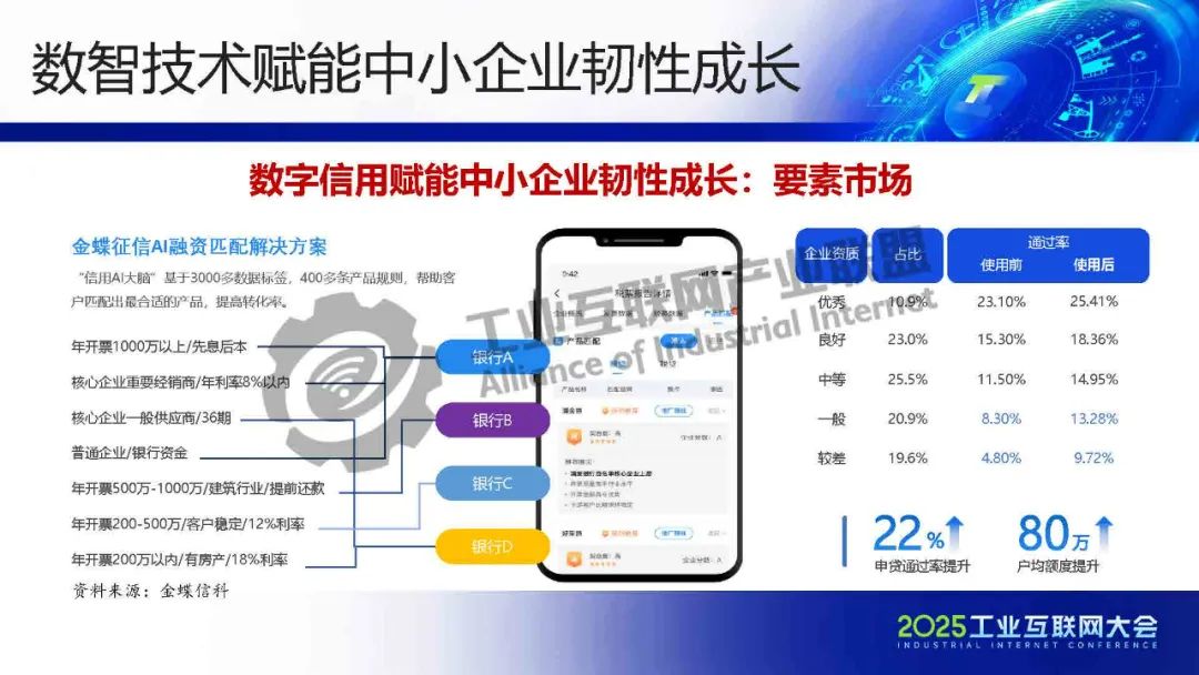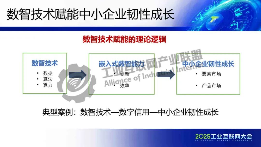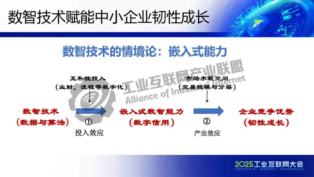 鄔愛其介紹,數(shù)智技術(shù)正成為中小企業(yè)韌性成長的關(guān)鍵驅(qū)動(dòng)力。數(shù)智技術(shù)通過提升協(xié)同效率、優(yōu)化供應(yīng)鏈和構(gòu)建創(chuàng)新生態(tài),顯著增強(qiáng)企業(yè)競爭優(yōu)勢,但其效能取決于組織的互補(bǔ)性投入和市場承載空間。我國中小企業(yè)數(shù)智化轉(zhuǎn)型進(jìn)程加速,政策支持力度加大,2024年多項(xiàng)政策文件出臺推動(dòng)試點(diǎn)和評測,但整體仍處早期階段。數(shù)智技術(shù)通過構(gòu)建數(shù)字信用體系賦能韌性成長,例如金蝶信科的AI融資匹配方案,利用產(chǎn)業(yè)鏈數(shù)據(jù)圖譜穿透上下游風(fēng)險(xiǎn),助力企業(yè)精準(zhǔn)識別客戶與供應(yīng)商。專精特新企業(yè)成為轉(zhuǎn)型中堅(jiān),集群化、“鏈?zhǔn)健鞭D(zhuǎn)型模式逐步成型。未來需進(jìn)一步解決技術(shù)嵌入能力與市場變現(xiàn)的協(xié)同問題。