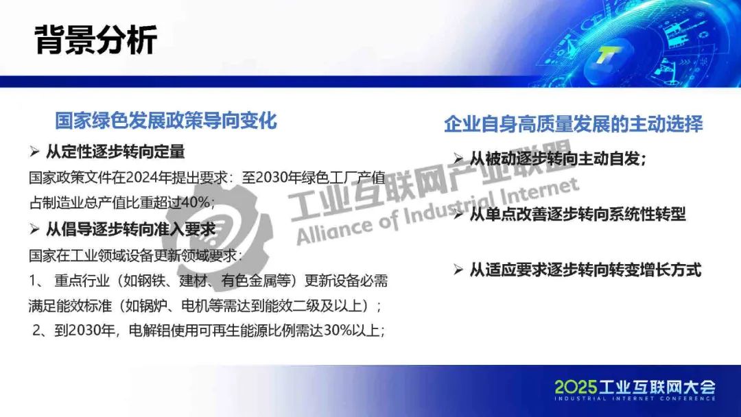 仲肇中介紹,國家政策文件在2024年提出要求:至2030年綠色工廠產值占制造業(yè)總產值比重超過40%。企業(yè)自身高質量發(fā)展的主動選擇從被動逐步轉向主動自發(fā),從單點改善逐步轉向系統(tǒng)性轉型,從適應要求逐步轉向轉變增長方式。《工業(yè)數(shù)字化綠色化協(xié)同轉型產品手冊(1.0版)》的發(fā)布將推動“雙碳”數(shù)字化、精準對接服務、促進交流合作、提供政策完善建議。