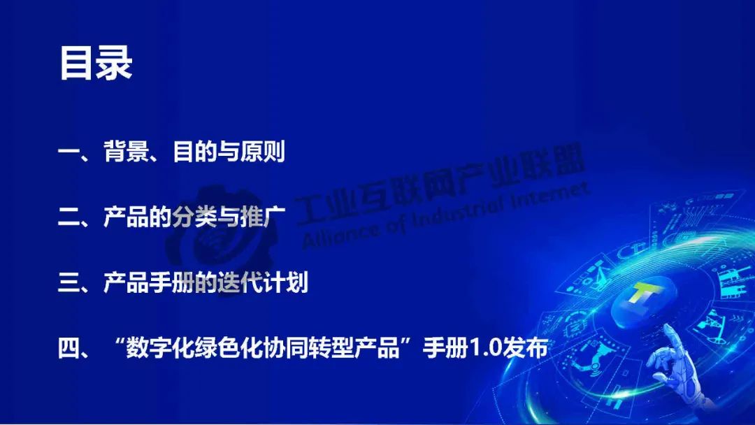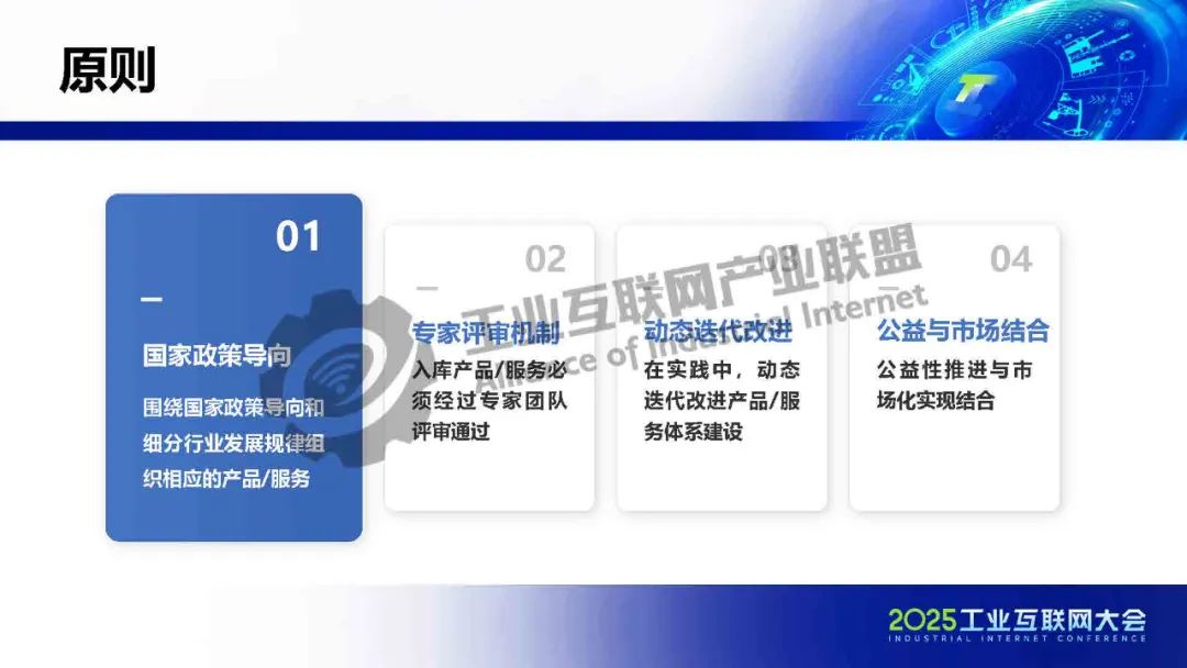 《數(shù)字化綠色化協(xié)同轉型產品手冊1.0》的四個原則:一是國家政策導向:圍繞國家政策導向和細分行業(yè)發(fā)展規(guī)律組織相應的產品/服務。二是專家評審機制:入庫產品/服務必須經過專家團隊評審通過。三是動態(tài)迭代改進:在實踐中,動態(tài)迭代改進產品/服務體系建設。四是公益與市場結合:公益性推進與市場化實現(xiàn)結合。