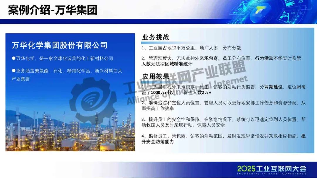 謝飛鵬分享了數(shù)字化轉(zhuǎn)型下危化企業(yè)安全生產(chǎn)管理的新模式。真趣科技作為國家高新技術(shù)企業(yè),依托位置物聯(lián)網(wǎng)和預測性維護技術(shù),幫助企業(yè)管控人員不安全行為和設(shè)備異常狀態(tài)。分析顯示,96%的安全事故源于人的不安全行為和物的不安全狀態(tài),而傳統(tǒng)管理存在數(shù)據(jù)孤島、系統(tǒng)冗余等痛點。為此,真趣提出“一網(wǎng)一圖一平臺”數(shù)字底座,通過智能人員定位和AI驅(qū)動的設(shè)備預測性維護,實現(xiàn)精細化安全管理。該方案已在中化、萬華等企業(yè)成功落地,覆蓋千萬㎡廠區(qū),降低設(shè)備故障率30%,減少非計劃停機,顯著提升安全與運營效率,驗證了數(shù)字化轉(zhuǎn)型在危化行業(yè)的實踐價值。