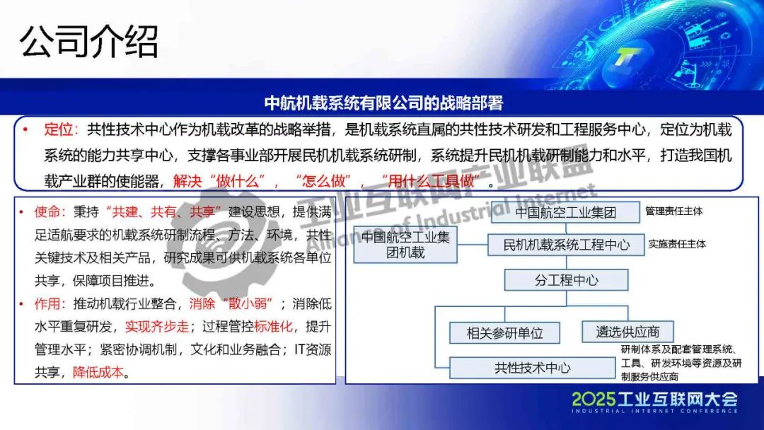 5月23日,在2025工業(yè)互聯(lián)網(wǎng)大會“工業(yè)可信數(shù)據(jù)空間發(fā)展專題活動”上,中航機載系統(tǒng)共性技術(shù)有限公司云平臺與信息化研究室主任周振興發(fā)表了《航空機械行業(yè)實踐分享》的主題演講。