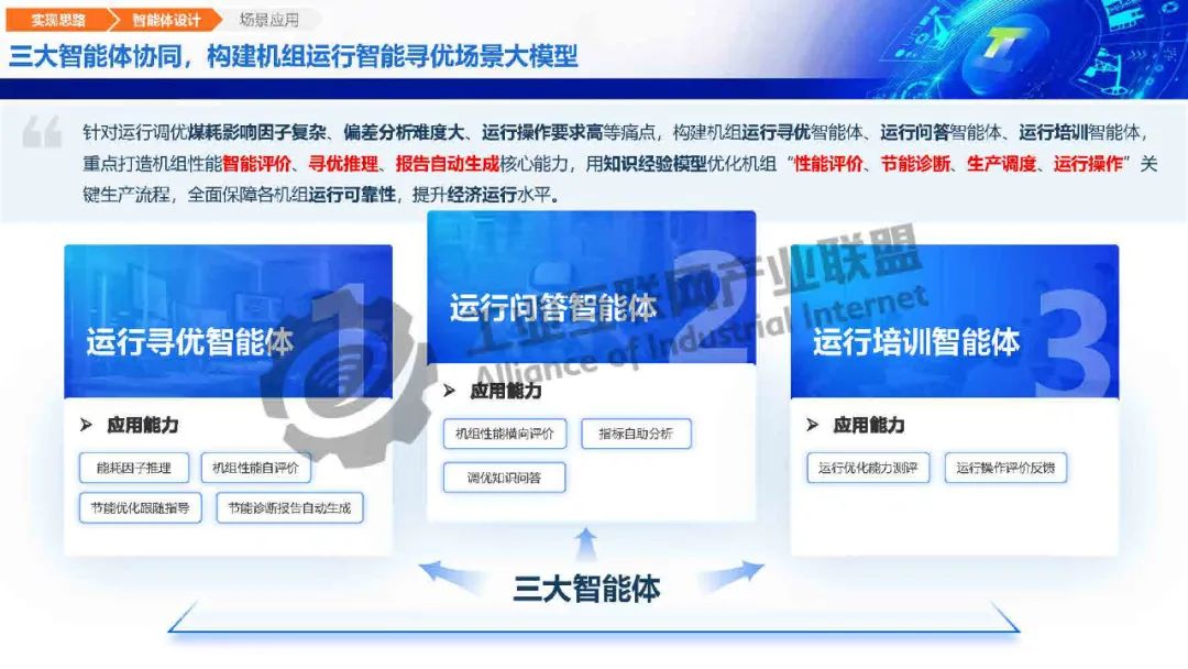 針對(duì)運(yùn)行調(diào)優(yōu)煤耗影響因子復(fù)雜、偏差分析難度大、運(yùn)行操作要求高等痛點(diǎn),瑤光工業(yè)大模型構(gòu)建機(jī)組運(yùn)行尋優(yōu)智能體、運(yùn)行問(wèn)答智能體、運(yùn)行培訓(xùn)智能體,重點(diǎn)打造機(jī)組性能智能評(píng)價(jià)、尋優(yōu)推理、報(bào)告自動(dòng)生成核心能力,用知識(shí)經(jīng)驗(yàn)?zāi)P蛢?yōu)化機(jī)組“性能評(píng)價(jià)、節(jié)能診斷、生產(chǎn)調(diào)度、運(yùn)行操作”關(guān)鍵生產(chǎn)流程,全面保障各機(jī)組運(yùn)行可靠性,提升經(jīng)濟(jì)運(yùn)行水平。