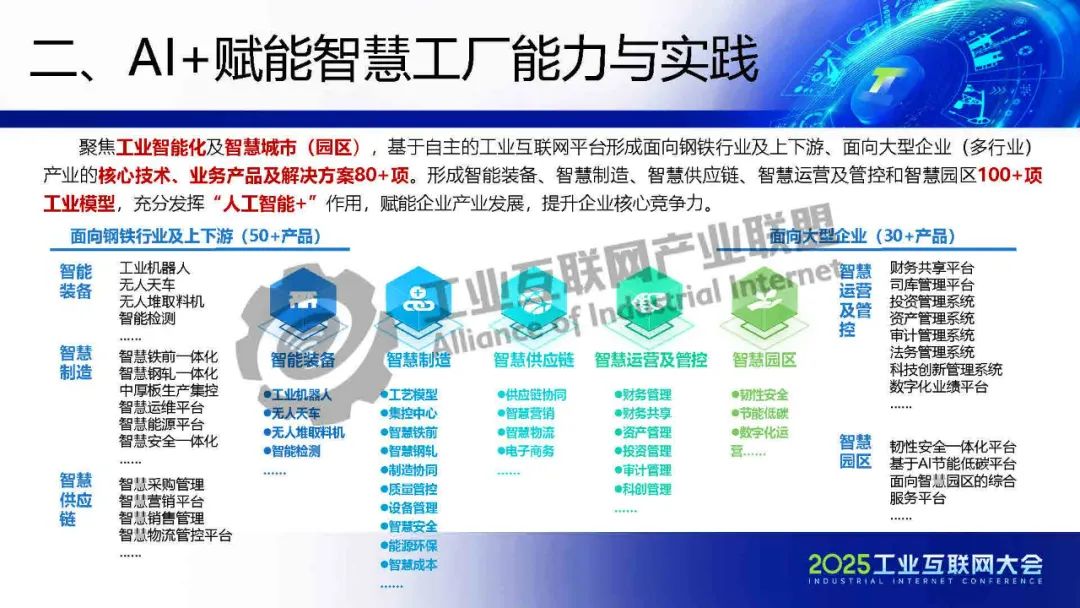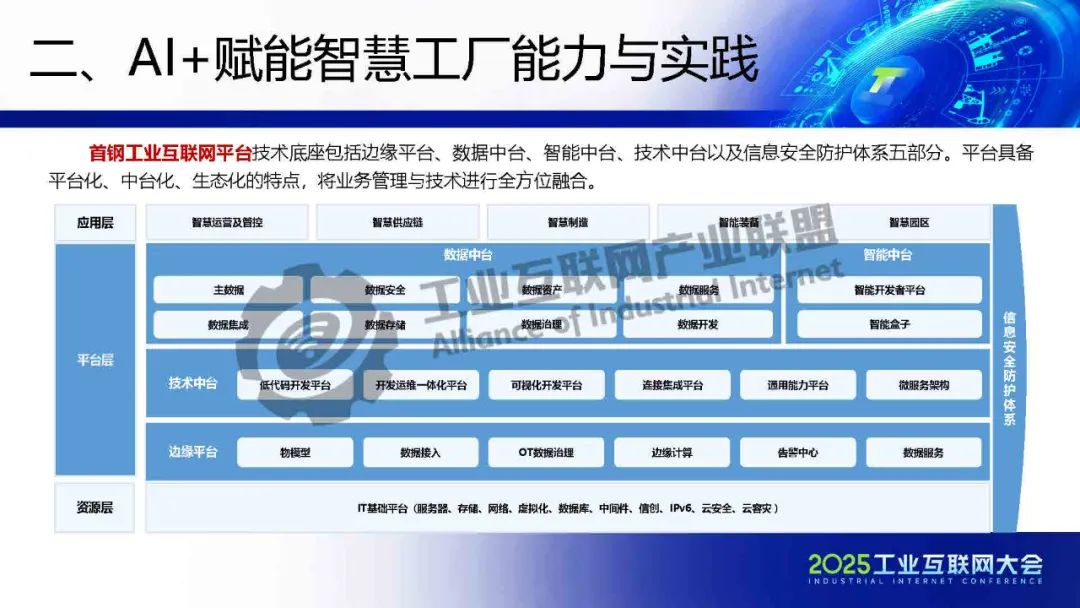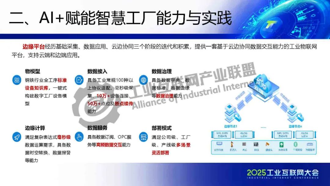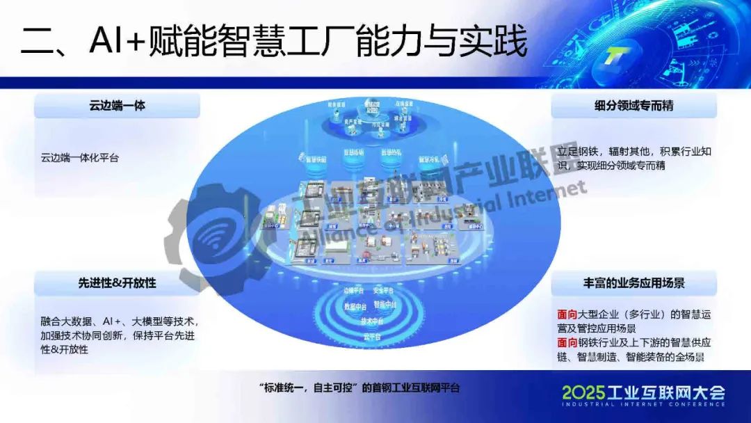5月22日,在2025工業(yè)互聯(lián)網(wǎng)大會(huì)“工業(yè)互聯(lián)網(wǎng)平臺(tái)高質(zhì)量發(fā)展專題活動(dòng)”上,北京首鋼自動(dòng)化信息技術(shù)有限公司工業(yè)互聯(lián)網(wǎng)產(chǎn)業(yè)規(guī)劃總監(jiān)樊艷偉發(fā)表了《工業(yè)互聯(lián)網(wǎng)+AI賦能鋼鐵行業(yè)智慧工廠建設(shè)》的主題演講。
