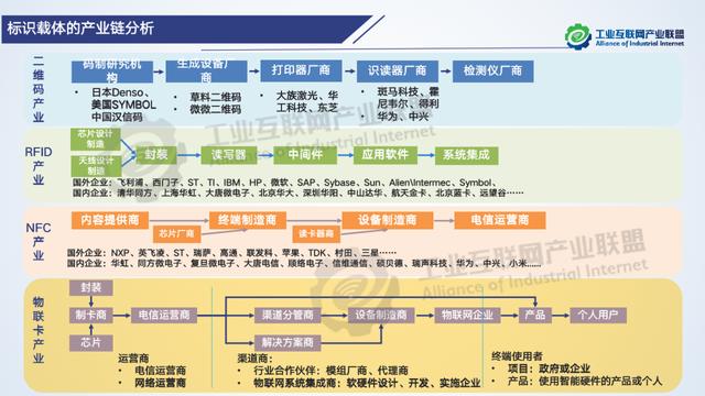白皮書主要分為四個(gè)部分。第一部分為概述,主要介紹工業(yè)互聯(lián)網(wǎng)標(biāo)識(shí)解析、標(biāo)識(shí)載體的相關(guān)概念,以及本白皮書的研究范疇。第二部分為工業(yè)互聯(lián)網(wǎng)標(biāo)識(shí)載體關(guān)鍵技術(shù)及其演進(jìn)趨勢(shì),主要包括一維條形碼、二維條形碼、射頻識(shí)別、近場(chǎng)通信等被動(dòng)標(biāo)識(shí)載體關(guān)鍵技術(shù),以及通用集成電路卡、芯片、模組、終端等主動(dòng)標(biāo)識(shí)載體關(guān)鍵技術(shù)。第三部分為工業(yè)互聯(lián)網(wǎng)標(biāo)識(shí)載體產(chǎn)業(yè)生態(tài)及其發(fā)展現(xiàn)狀,主要包括產(chǎn)業(yè)鏈、市場(chǎng)規(guī)模的梳理,以及重點(diǎn)區(qū)域、重點(diǎn)企業(yè)形成的產(chǎn)地圖。第四部分為基于主動(dòng)標(biāo)識(shí)載體技術(shù)的典型工業(yè)互聯(lián)網(wǎng)應(yīng)用,主要包括可信數(shù)據(jù)采集、數(shù)據(jù)融合、統(tǒng)一身份認(rèn)證、接入安全認(rèn)證等。最后第五部分對(duì)工業(yè)互聯(lián)網(wǎng)載體技術(shù)和產(chǎn)業(yè)發(fā)展提出若干建議。