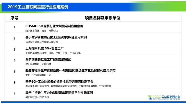 成果發布 | 2019工業互聯網垂直行業應用案例名單公布