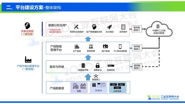 點擊下方鏈接回看演講視頻: 專家說 “中建科工根據(jù)'數(shù)字化、信息化、智能化'的設(shè)計理念,充分利用工業(yè)PON網(wǎng)絡(luò)、智能生產(chǎn)管理系統(tǒng)、工業(yè)大數(shù)據(jù)平臺等先進技術(shù),構(gòu)建基于云架構(gòu)的大數(shù)據(jù)分析平臺。通過建立工業(yè)互聯(lián)網(wǎng)大數(shù)據(jù)分析平臺,進行數(shù)據(jù)采集、分析、決策,優(yōu)化提升可制造性和可服務(wù)性,形成企業(yè)智能管控閉環(huán),提高生產(chǎn)效率,降低運營成本。” 以下是演講PPT 敬請閱讀