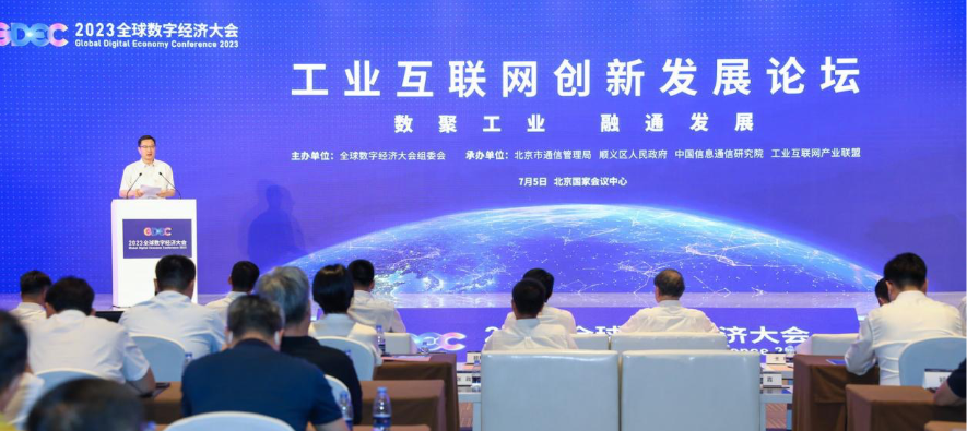 2023年7月5日,2023全球數(shù)字經(jīng)濟(jì)大會—工業(yè)互聯(lián)網(wǎng)創(chuàng)新發(fā)展專題論壇在北京舉辦。工業(yè)和信息化部信息通信管理局一級巡視員王鵬,北京市經(jīng)濟(jì)和信息化局黨組成員、副局長顧瑾栩,北京市通信管理局黨組成員、副局長王暉,北京市順義區(qū)委常委、副區(qū)長徐曉俊,中國信息通信研究院(以下簡稱“中國信通院”)紀(jì)委書記李德文為活動致辭;中國工程院院士沈昌祥、中國信通院工業(yè)互聯(lián)網(wǎng)與物聯(lián)網(wǎng)研究所副所長羅松出席活動并作主旨報告;工業(yè)互聯(lián)網(wǎng)領(lǐng)域的行業(yè)專家、企業(yè)代表以及新聞媒體參加了本次活動。