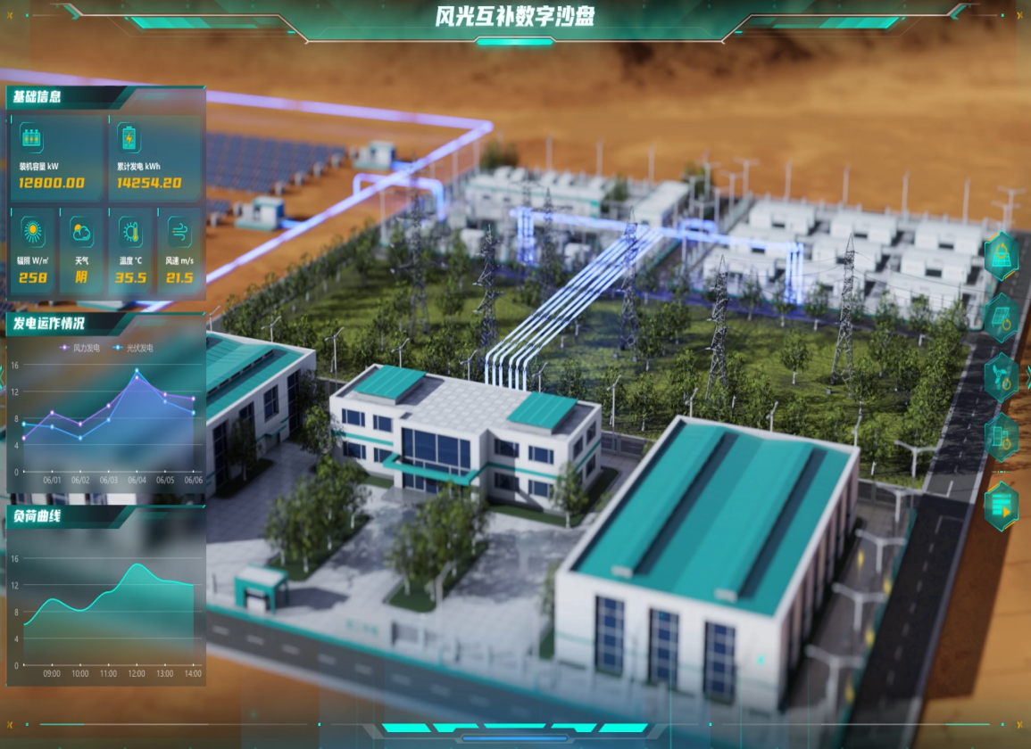 通過直觀、形象演練功能的工控沙盤,有效還原新能源場站發電業務的現場情況,方便參觀者了解電力系統業務流程、現場情況,以及安全事件發生前、中、后階段,會造成的各類實際影響。