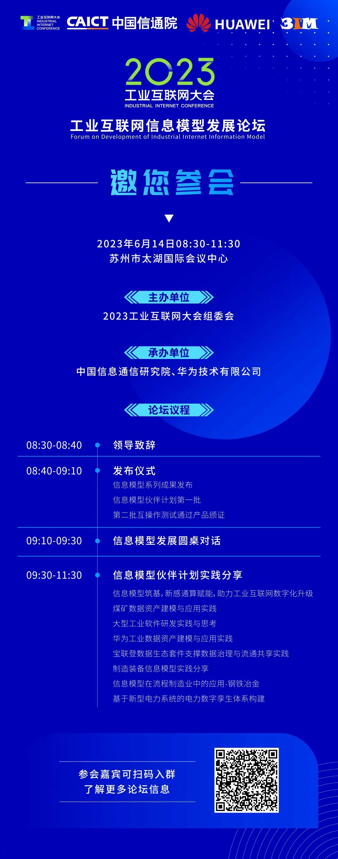 工業互聯網信息模型發展論壇將于6月14日上午08:30在蘇州市太湖國際會議中心舉辦。論壇以“推進數據融合互操作 共商工業數字化發展”為主題。本次論壇上將重磅發布信息模型系列成果,舉行信息模型伙伴計劃第一批、第二批互操作產品頒證儀式,來自產、學、研、用領域專家和企業代表將通過圓桌對話、主題演講等形式共話工業數字化發展。