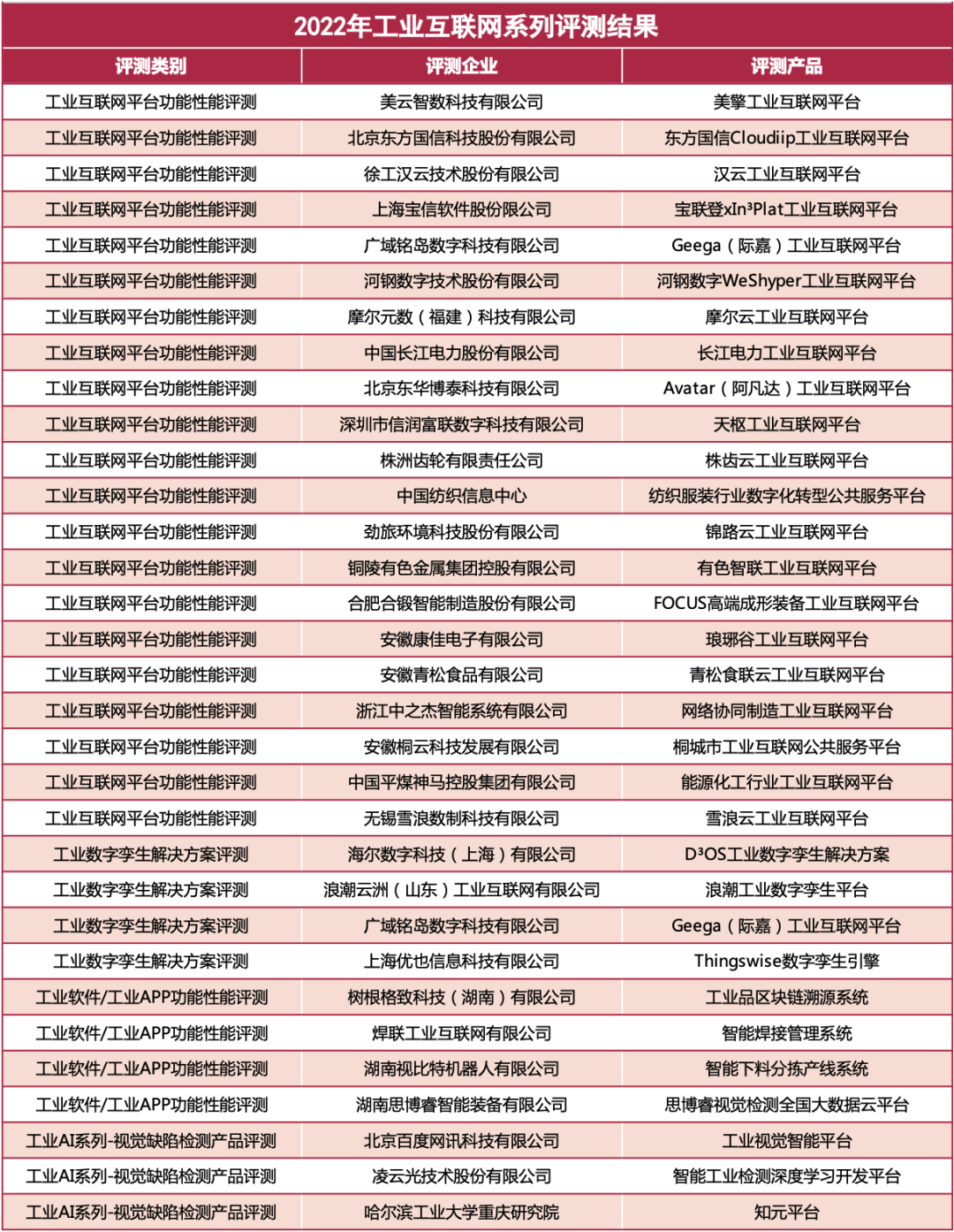 由工業(yè)和信息化部、江蘇省人民政府主辦,中國信息通信研究院、江蘇省工業(yè)和信息化廳、江蘇省通信管理局、蘇州市人民政府、工業(yè)互聯(lián)網產業(yè)聯(lián)盟等單位聯(lián)合承辦的2023年工業(yè)互聯(lián)網大會已于6月16日在蘇州順利閉幕。在2021-2023工業(yè)互聯(lián)網產業(yè)聯(lián)盟成果報告會上,2022年工業(yè)互聯(lián)網平臺功能性能等評測結果正式對外公布。