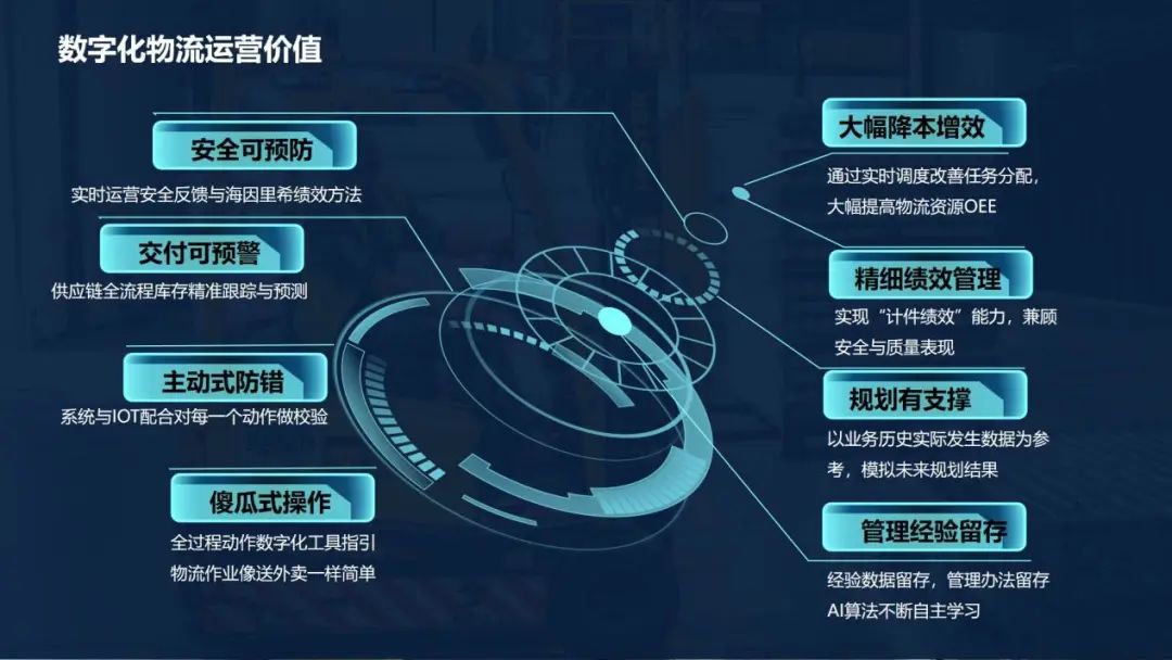 為客戶的智能制造提供全方位保障,實(shí)現(xiàn)內(nèi)部物流系統(tǒng)資源全要素?cái)?shù)字化升級(jí)改造、硬件設(shè)施設(shè)備、作業(yè)過程、物流資源的信息化管理與分析和全局物流資源的智慧化統(tǒng)籌,有效解決了當(dāng)前服務(wù)對(duì)象傳統(tǒng)內(nèi)部物流系統(tǒng)效率低下、管理模式落后、資源利用率低等難題,助推企業(yè)的“強(qiáng)鏈、補(bǔ)鏈”進(jìn)程,為智能制造和柔性制造保駕護(hù)航。