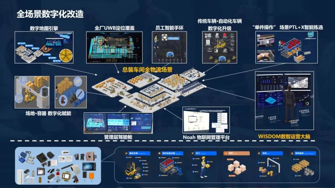 2、物流信息可視化。部署實(shí)施用于硬件管理、作業(yè)績(jī)效分析、業(yè)務(wù)定義、業(yè)務(wù)流程管理的Noah物聯(lián)網(wǎng)管理平臺(tái)和LES、WMS等業(yè)務(wù)系統(tǒng)。主要包括Noah物聯(lián)網(wǎng)管理平臺(tái)、LES物料拉動(dòng)系統(tǒng)、WMS倉(cāng)儲(chǔ)管理系統(tǒng)等,并應(yīng)用以上技術(shù)和業(yè)務(wù)系統(tǒng),實(shí)現(xiàn)IoT硬件、物流供給作業(yè)過程、物流全域資源的信息化管理和分析。