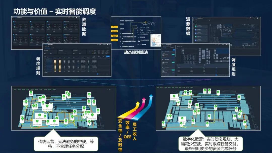 搭建數(shù)據(jù)采集、傳輸、分析、深度學(xué)習(xí)和成長(zhǎng)的通道和平臺(tái):在底層配備各種物聯(lián)網(wǎng)硬件設(shè)備,賦能于現(xiàn)場(chǎng)運(yùn)營(yíng)資源,包括人、車、物、場(chǎng)等,整體實(shí)現(xiàn)任務(wù)感知、作業(yè)感知、揀選防錯(cuò)、實(shí)時(shí)定位等功能;邊緣層搭建物聯(lián)網(wǎng)管理平臺(tái),向下采集物聯(lián)網(wǎng)硬件設(shè)備運(yùn)行數(shù)據(jù)向上傳遞,同時(shí)接收上層任務(wù)數(shù)據(jù)向下派發(fā);業(yè)務(wù)系統(tǒng)層,整體運(yùn)營(yíng)過程將由業(yè)務(wù)訂單、業(yè)務(wù)流程驅(qū)動(dòng),業(yè)務(wù)系統(tǒng)基于生產(chǎn)計(jì)劃及客戶訂單,轉(zhuǎn)化為運(yùn)營(yíng)任務(wù)數(shù)據(jù),并將業(yè)務(wù)數(shù)據(jù)傳遞至數(shù)智化運(yùn)營(yíng)平臺(tái);在頂層搭建數(shù)智化運(yùn)營(yíng)平臺(tái),通過對(duì)接業(yè)務(wù)系統(tǒng)獲取任務(wù)數(shù)據(jù),利用自身運(yùn)營(yíng)優(yōu)化算法計(jì)算完成任務(wù)的最優(yōu)資源,實(shí)現(xiàn)智能任務(wù)調(diào)度,從而保證現(xiàn)場(chǎng)運(yùn)營(yíng)資源利用率最大化。