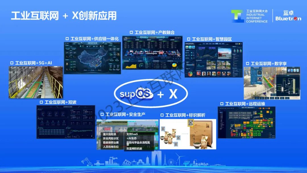 基于工業(yè)操作系統(tǒng)的特性,藍(lán)卓也在探索supOS+X的創(chuàng)新應(yīng)用模式,在工業(yè)互聯(lián)網(wǎng)+產(chǎn)教融合、工業(yè)互聯(lián)網(wǎng)+5G、工業(yè)互聯(lián)網(wǎng)+雙碳、工業(yè)互聯(lián)網(wǎng)+安全生產(chǎn)、工業(yè)互聯(lián)網(wǎng)+數(shù)字孿生等場景化的創(chuàng)新模式上,藍(lán)卓都有非常豐富的應(yīng)用案例。