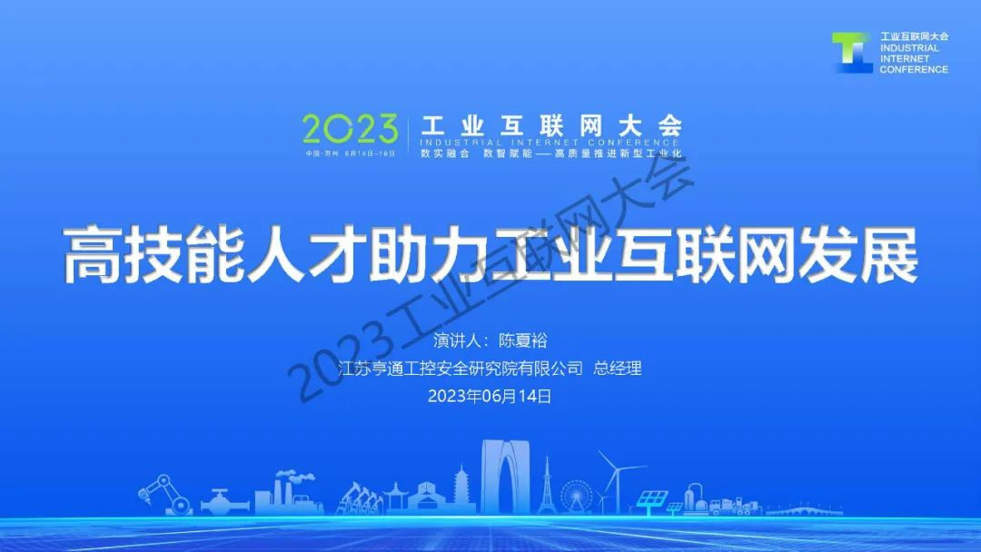 6月14日,在2023工業(yè)互聯網大會“工業(yè)互聯網人才發(fā)展論壇”上,江蘇亨通工控安全研究院有限公司總經理陳夏裕發(fā)表了《高技能人才助力工業(yè)互聯網發(fā)展》的主題演講。