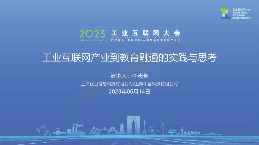 6月14日,在2023工業互聯網大會“工業互聯網人才發展論壇”上,上海優也信息科技有限公司副總經理、牛笛教育科技公司總經理李志芳發表了《工業互聯網產業到教育融通的實踐和思考》的主題演講。