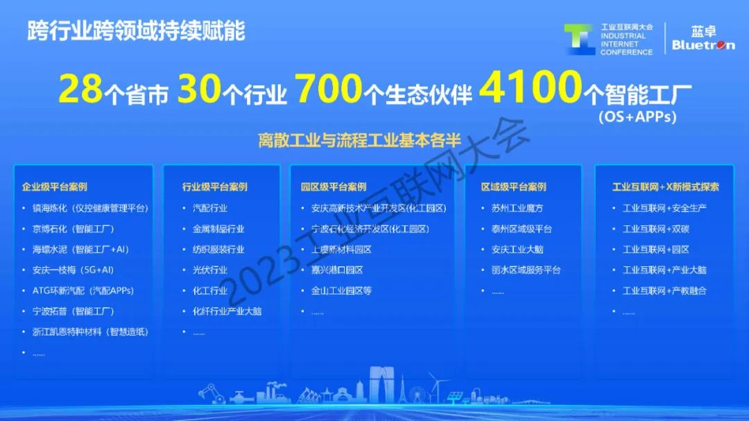 通過“平臺+工業(yè)APPs”模式,藍卓已在全球30個行業(yè)建設(shè)了4100+多個新型智能工廠,包括水泥、石化、化工、建材、冶金、電力等流程行業(yè),以及汽配、裝備制造、金屬加工、電子制造等離散行業(yè)。其中,雅戈爾、鎮(zhèn)海煉化、海螺水泥等客戶被評為國家級“數(shù)字領(lǐng)航企業(yè)”,京博石化、寶麗迪等上榜工信部“工業(yè)互聯(lián)網(wǎng)平臺創(chuàng)新領(lǐng)航應(yīng)用案例”。