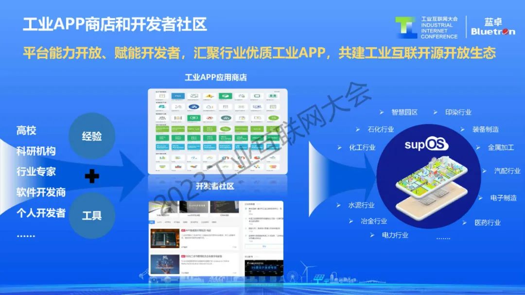 正如手機操作系統(tǒng)離不開應(yīng)用商店豐富的APP,supOS也需要匯聚大量行業(yè)優(yōu)質(zhì)的工業(yè)APP,目前,藍卓以“平臺+生態(tài)”戰(zhàn)略,通過平臺架構(gòu)逐步開源開放,提供低代碼開發(fā)框架、開放開發(fā)者社區(qū)等形式,不斷吸引平臺運營商、工業(yè)軟件開發(fā)商、系統(tǒng)服務(wù)商、科研機構(gòu)、工業(yè)企業(yè)等開發(fā)團隊,基于supOS打造豐富的應(yīng)用生態(tài)。