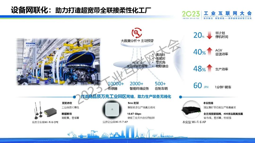 唐新兵表示,工業網絡是工業數字化的基石。先進工業網絡通過設備網聯化、聯接IP化、網絡智能化和網安一體化來加速”智改數轉”,加速工業互聯網創新發展。