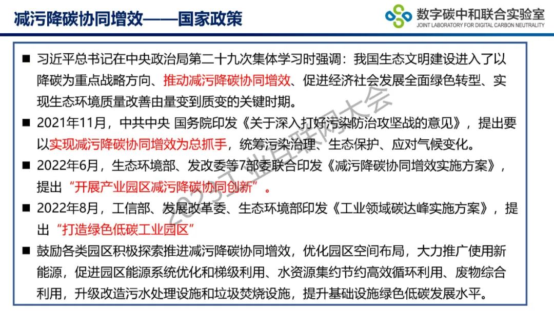 周濤指出我國園區(qū)減污降碳存在問題:1、園區(qū)底數(shù)不清,基礎薄弱,2、減污降碳協(xié)同技術政策體系不完善,3、缺乏系統(tǒng)減污降碳全流程管控體系,4、園區(qū)類型多樣,發(fā)展階段不一。園區(qū)應該盡快摸清物質(zhì)流,能量流路徑,查找可以協(xié)同的部分,尋找可行技術、系統(tǒng)集成、優(yōu)化物流能流,測算和評估減污、降碳的效果與成本,確保可行性與保障措施。
