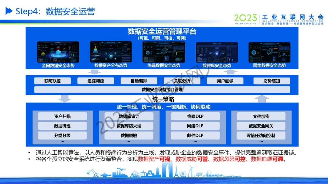 張?zhí)m蘭表示,工業(yè)互聯(lián)網(wǎng)數(shù)據(jù)安全是保障企業(yè)正常開展生產(chǎn)經(jīng)營活動的重要前提,經(jīng)濟(jì)社會穩(wěn)定發(fā)展的重要基石,也是總體國家安全戰(zhàn)略的重要組成。數(shù)據(jù)安全運(yùn)營管理平臺通過安全智能識別、防護(hù)、檢測、運(yùn)營做到可視、可管、可控和可溯。