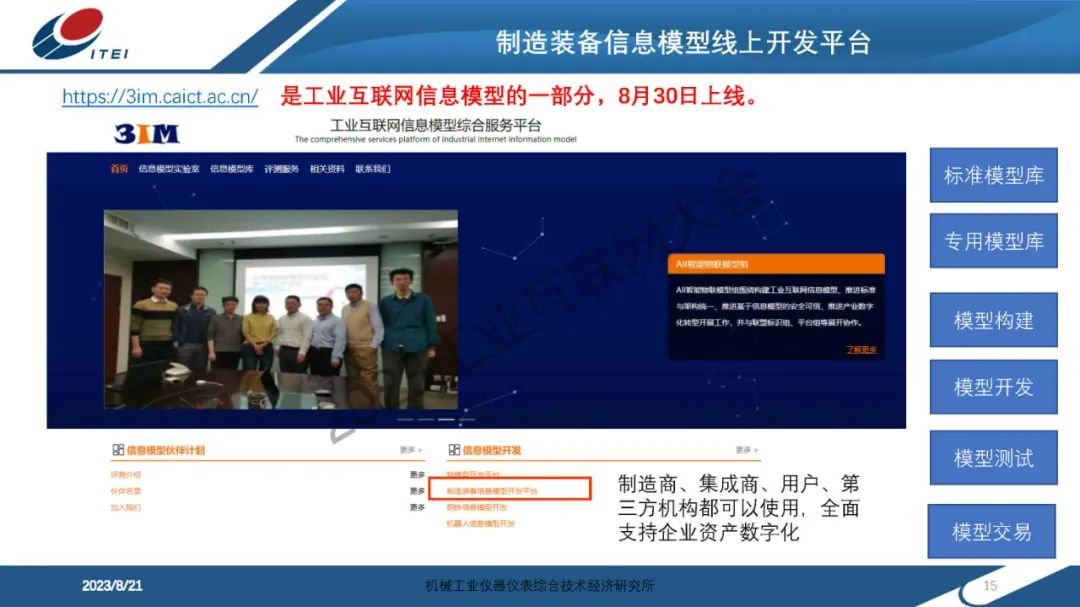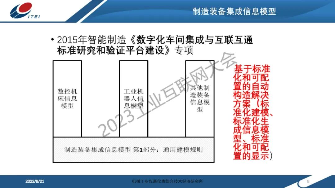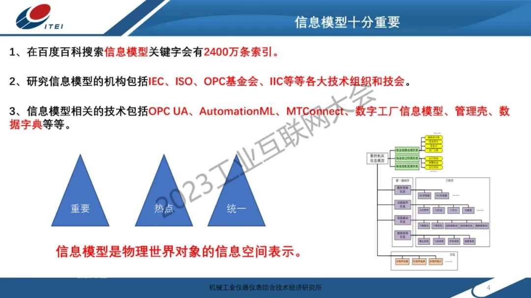 6月14日,在2023工業(yè)互聯(lián)網(wǎng)大會“工業(yè)互聯(lián)網(wǎng)信息模型發(fā)展論壇”上,機械工業(yè)儀器儀表綜合技術(shù)經(jīng)濟研究所傳感與網(wǎng)絡(luò)中心副主任趙艷領(lǐng)發(fā)表了《制造裝備信息模型實踐分享》的主題演講。