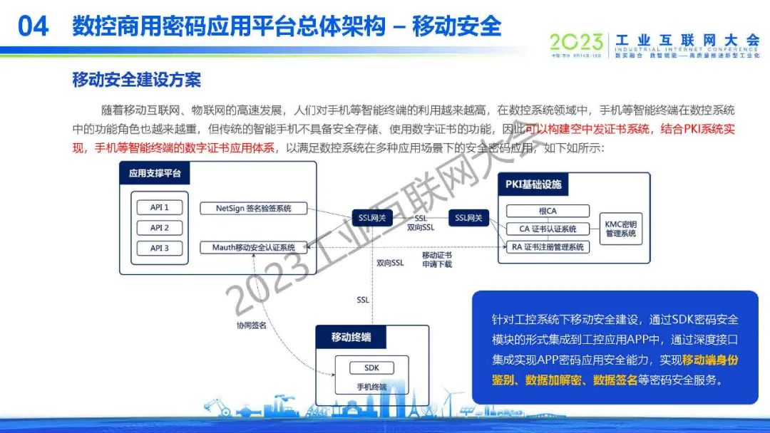 “隨著移動互聯網、物聯網的高速發展,人們對手機等智能終端的利用越來越高,在數控系統領域中,手機等智能終端在數控系統中的功能角色也越來越重,但傳統的智能手機不具備安全存儲、使用數字證書的功能,因此可以構建空中發證書系統,結合PKI系統實現,手機等智能終端的數字證書應用體系,以滿足數控系統在多種應用場景下的安全密碼應用?!?/p>