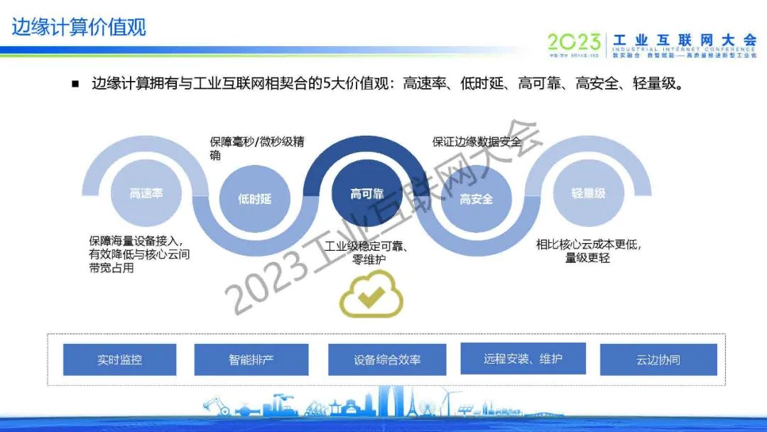 “邊緣計算擁有與工業互聯網相契合的5大價值觀:高速率、低時延、高可靠、高安全、輕量級。“