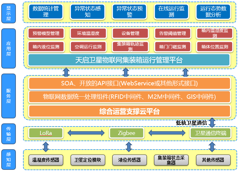 天啟衛星物聯網集裝箱供應鏈管理系統,基于天啟低軌窄帶衛星通信技術,結合低軌衛星通信、物聯網、邊緣計算、大數據、云計算等技術優勢,為用戶的集裝箱供應鏈在線管理提供技術手段;提供包括物聯網數據采集、衛星終端數據匯集、低軌窄帶衛星通信、物聯網平臺管理等整體性解決方案。