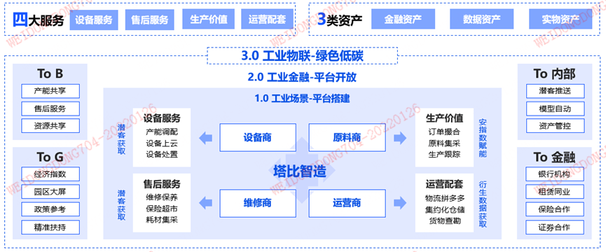 基于對中小微制造企業(yè)的熟悉,“塔比智造”平臺橫向以中小微企業(yè)成長過程為線索,覆蓋其產業(yè)升級、規(guī)模擴張中的固定資產新增需求以及營運資金配套需求;縱向以設備生命周期為線索,覆蓋設備采購、使用、轉讓等每個環(huán)節(jié)衍生出的企業(yè)經營管理需求,最終形成以設備為載體、以“塔比智造”平臺為依托,協(xié)同金融機構,解決中小微制造企業(yè)在每一次交易、使用、處置環(huán)節(jié)中的管理需求及融資需求,完成產業(yè)生態(tài)閉環(huán)。
