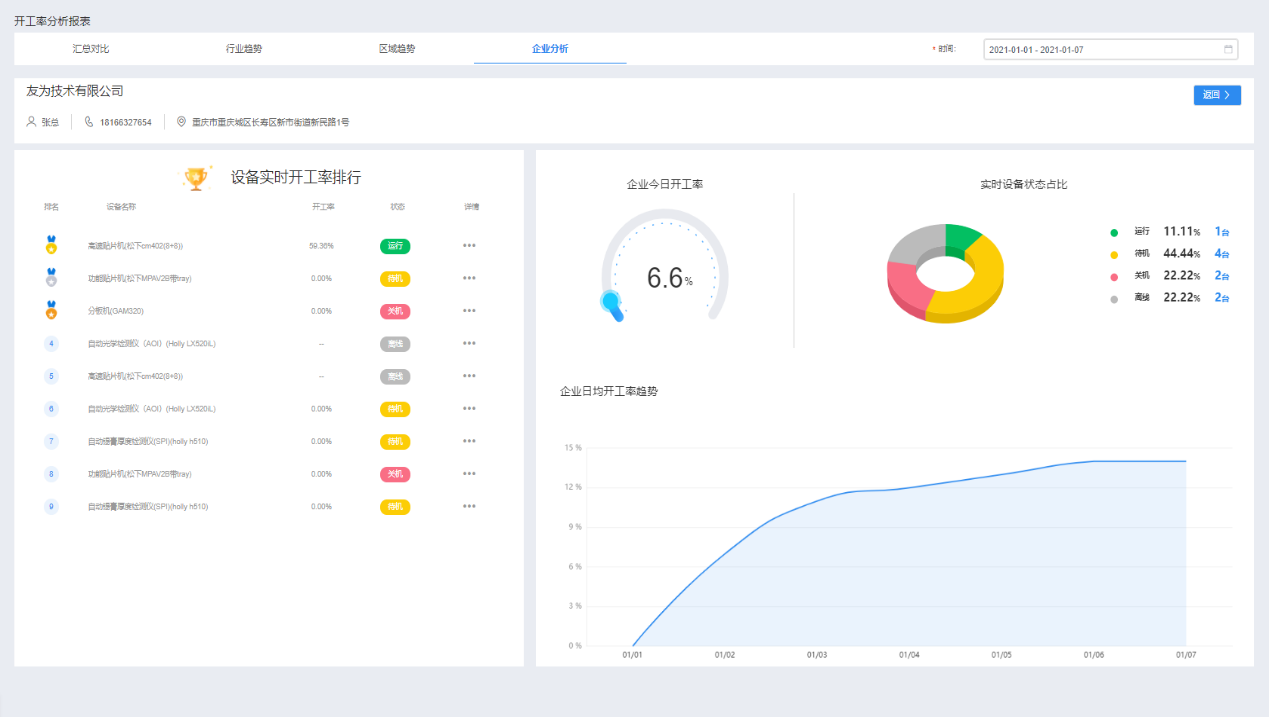 圖9.設備手環(huán)后臺PC端的開工分析報表頁面