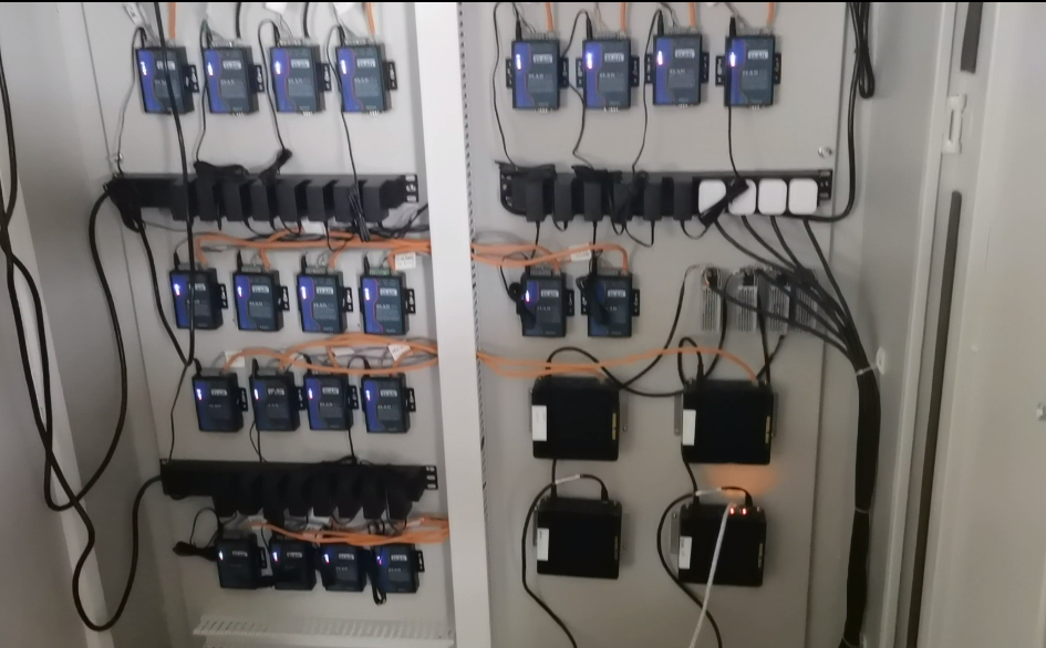 當(dāng)前是串口服務(wù)器采集表計(jì)數(shù)據(jù),將表計(jì)數(shù)據(jù)傳輸至現(xiàn)場(chǎng)配電柜內(nèi)工控機(jī),工控機(jī)與服務(wù)器網(wǎng)絡(luò)連接;直接將表計(jì)與通訊一分二模塊連接,通過現(xiàn)場(chǎng)網(wǎng)線與安裝在服務(wù)器機(jī)房的本地服務(wù)器連接,將數(shù)據(jù)采集至本地服務(wù)器;實(shí)現(xiàn)本地服務(wù)器與云平臺(tái)連接。