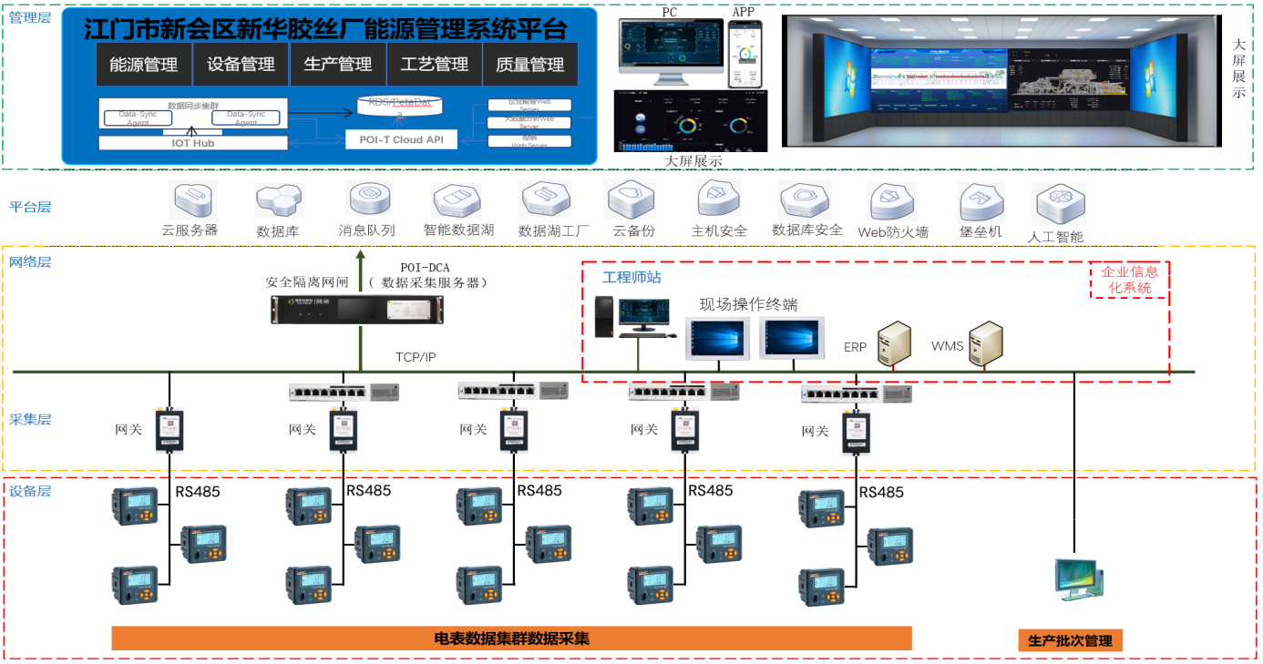 面向場(chǎng)景:打造了一套新華膠絲廠能耗在線監(jiān)測(cè)管理系統(tǒng)平臺(tái),具備與ERP等上層信息系統(tǒng),以及一期項(xiàng)目的工廠數(shù)字化制造運(yùn)營(yíng)系統(tǒng)、現(xiàn)場(chǎng)儀器儀表、設(shè)備的集成能力,并將這些實(shí)時(shí)數(shù)據(jù)存入本地MySQL數(shù)據(jù)庫(kù),為未來企業(yè)發(fā)展新系統(tǒng)的集成,打下穩(wěn)定、擴(kuò)展性的基礎(chǔ)。