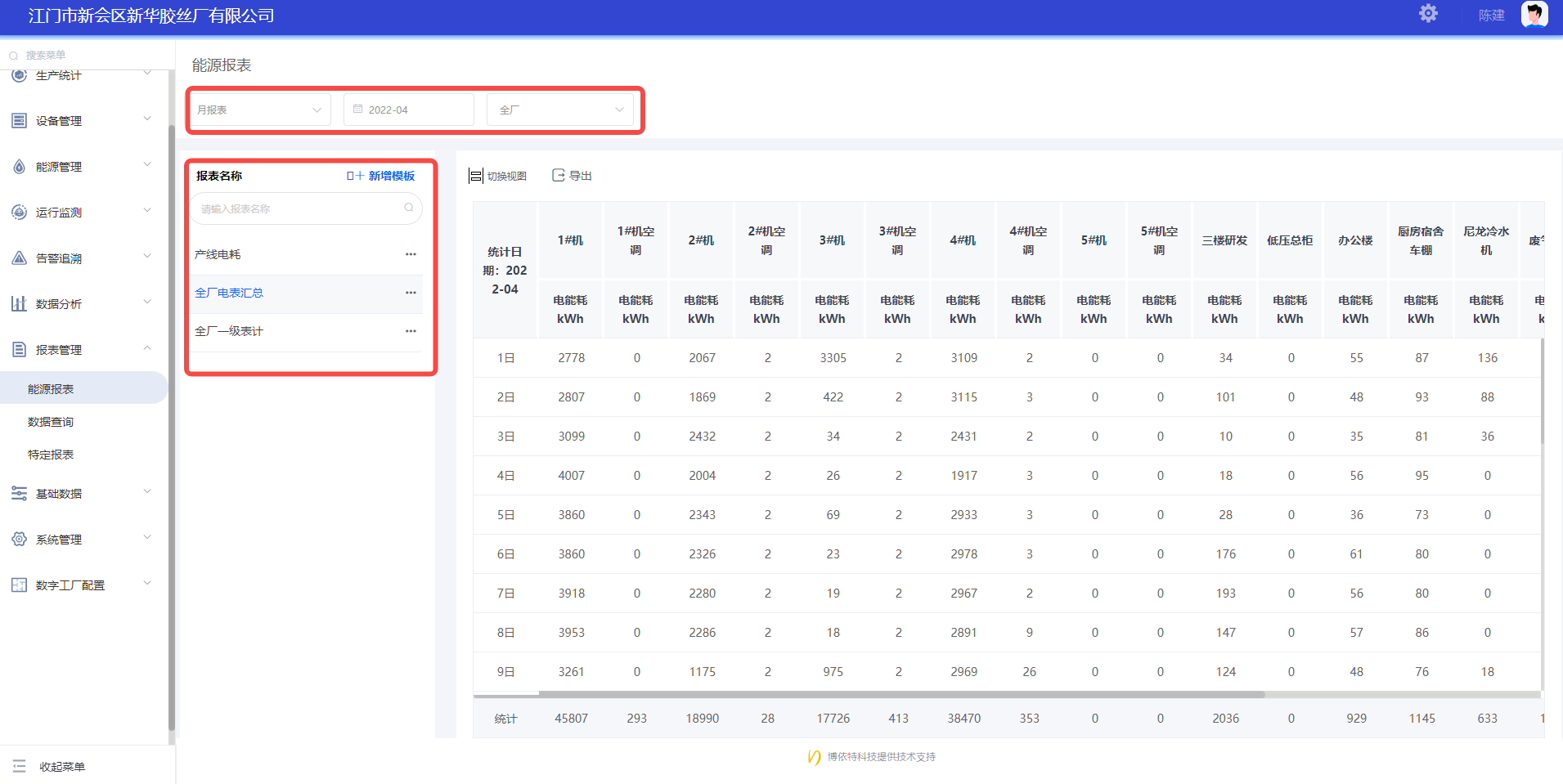報(bào)表是新華膠絲廠生產(chǎn)數(shù)據(jù)匯總的主要形式。報(bào)表管理模塊分為定制化報(bào)表和自定義報(bào)表兩大類別,實(shí)現(xiàn)自動(dòng)抄表;能耗報(bào)表自動(dòng)生成;并支持用戶進(jìn)行自定義報(bào)表。報(bào)表管理模塊能夠有效解決企業(yè)生產(chǎn)報(bào)表種類、數(shù)據(jù)量繁多,統(tǒng)計(jì)耗時(shí)長(zhǎng),工作量大等問題,同時(shí)能夠提高報(bào)表數(shù)據(jù)的準(zhǔn)確性和實(shí)時(shí)性。(報(bào)表支持EXCEL導(dǎo)出)。