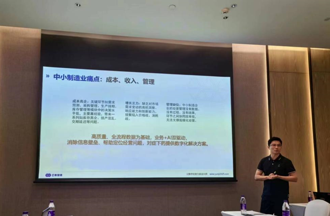 深圳云集智造系統(tǒng)技術(shù)有限公司首席科學(xué)家明旒介紹了云集制造智慧經(jīng)營管理平臺。平臺通過全流程數(shù)字化管理,幫助中小企業(yè)在銷售管理、庫存周轉(zhuǎn)、計劃協(xié)同、生產(chǎn)管理、采購、委外及財務(wù)、人力資源管理等關(guān)鍵環(huán)節(jié)實現(xiàn)了數(shù)百億的價值提升和成本節(jié)約,有效解決了企業(yè)在制造業(yè)數(shù)字化轉(zhuǎn)型中的痛點、難點。公司目前正在尋求A輪融資。
