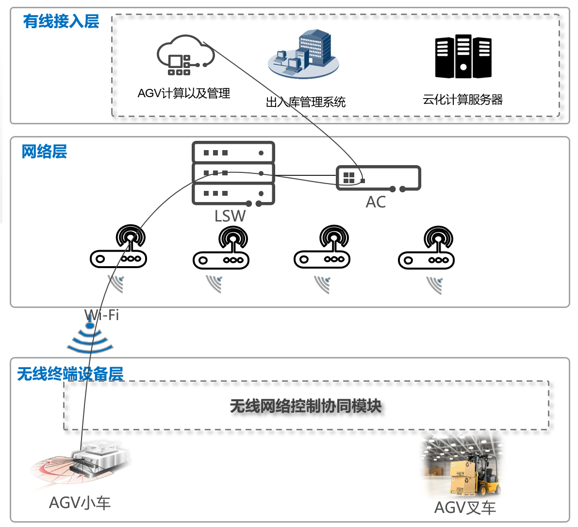 圖1-8 WLAN倉儲AGV通信系統模型